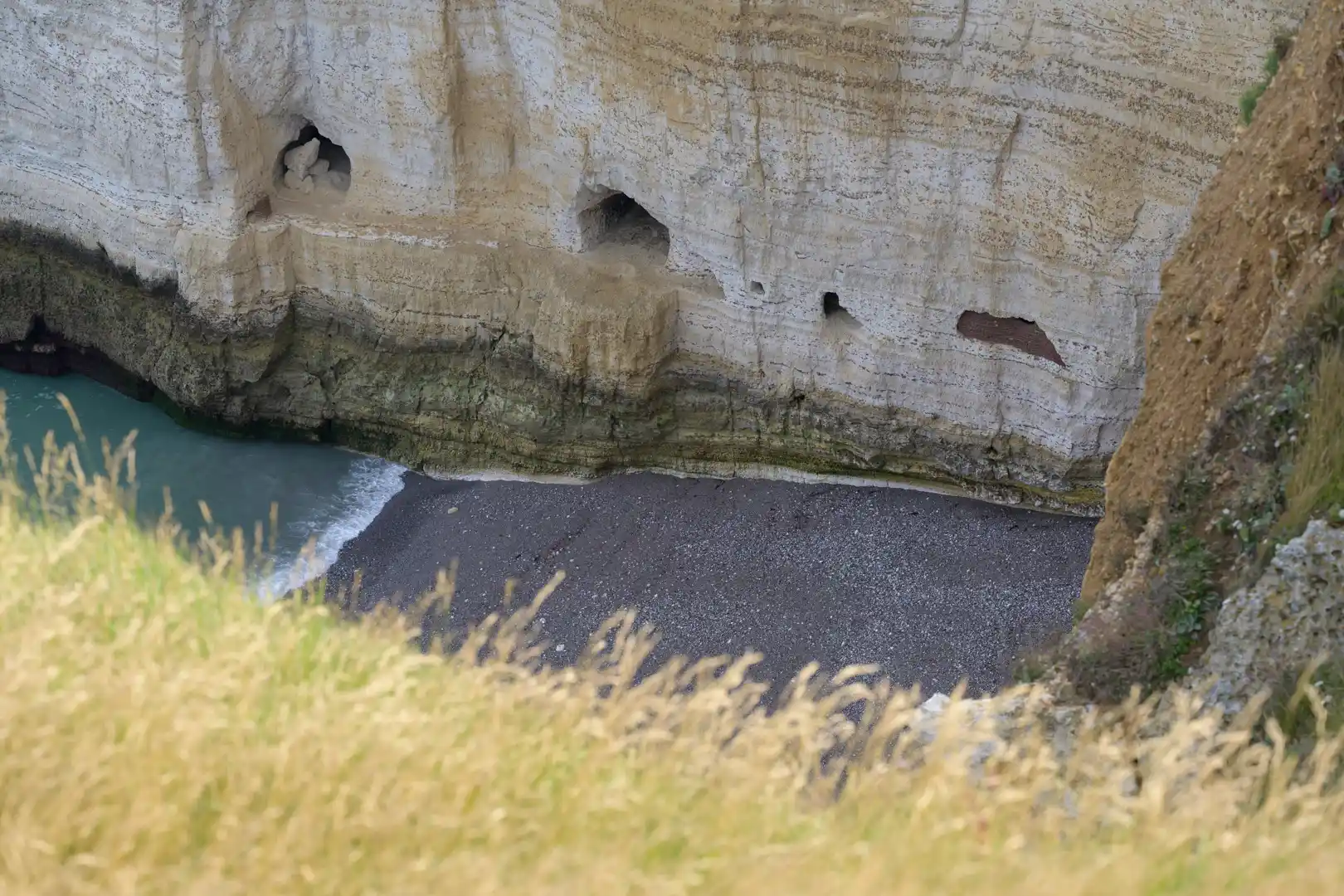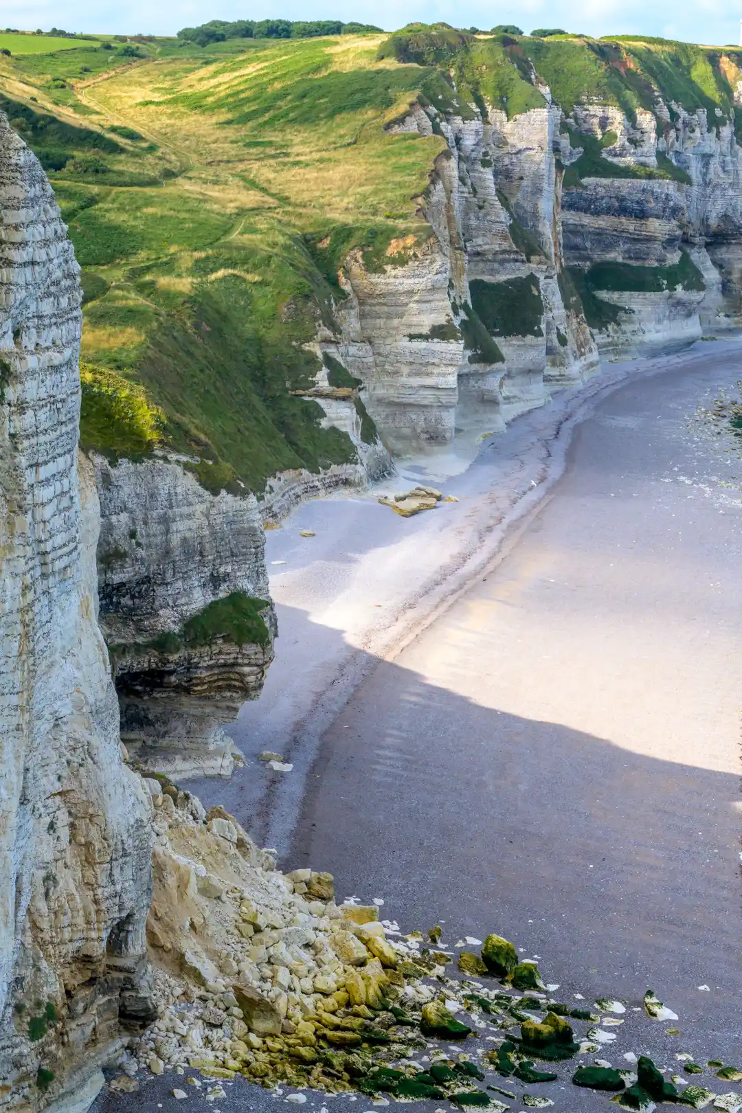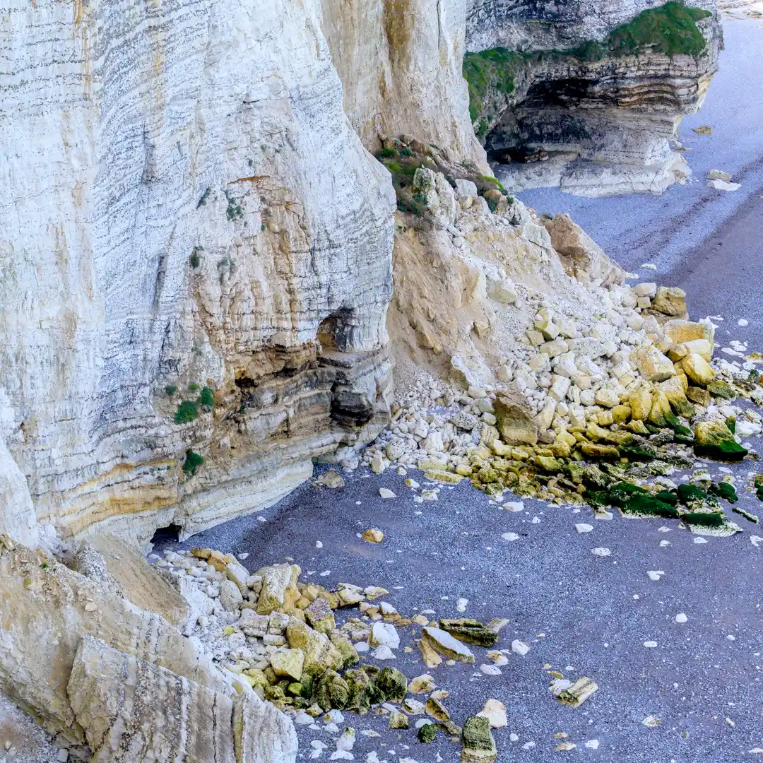 Quel sera ma surprise quand j’apercevrais avant l’arrivée sur le phare l’effondrement complet d’un pan de falaise. Et ce ne sera malheureusement pas le seul, juste une centaine de mètre plus loin, ce sera le même spectacle, où écumes des vagues, vertes prairies et plages de galets gris se marient avec les restes de craies étalées sur la côte.