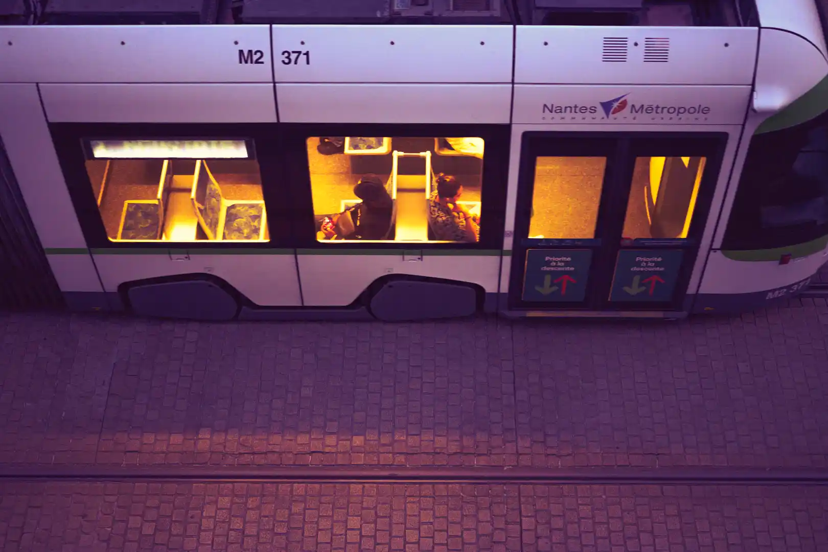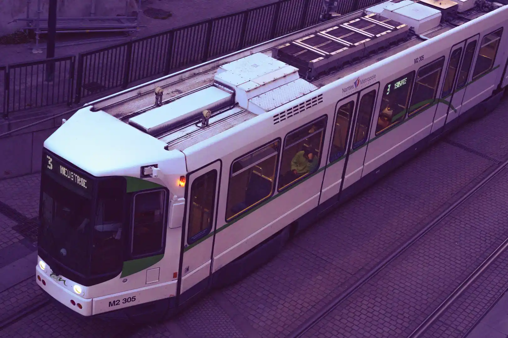 Au bord du canal, sur les contrées d’un parc où la vie nantaise fait son plein, sur les avenues principales, le tram est omniprésent. De jour jusqu’à tard dans la nuit, il accompagne les nantais dans leurs travails et leurs loisirs quotidiens.